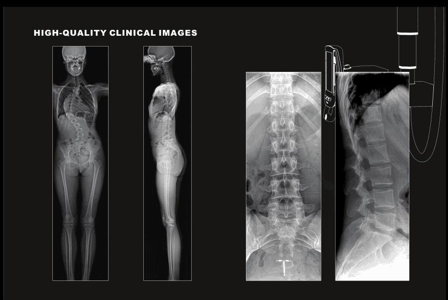 2)人體組織分離成像技術。首先進行不同能量的X-射線投影成像,然后考慮到骨骼與軟組織成像的不同特征,以及對人體組織運動的修正,采用動態非線性組合的方法合成有效的軟組織的圖像。從而有效地提高了對軟組織病變的診斷。