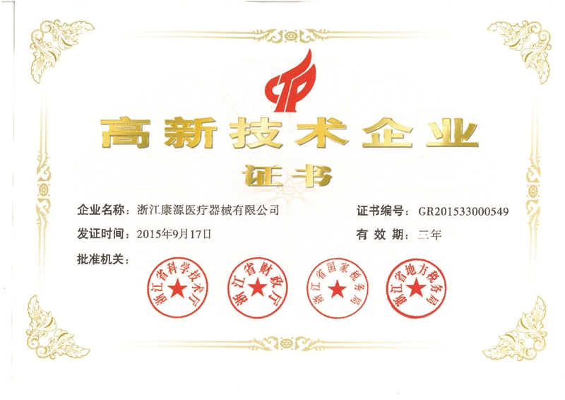 取得國家高新技術企業資質,意味著康源醫療可以享受更多國家優惠政策,可以創造更多國內外領先的技術,可以擁有更廣闊的空間服務于新老客戶。